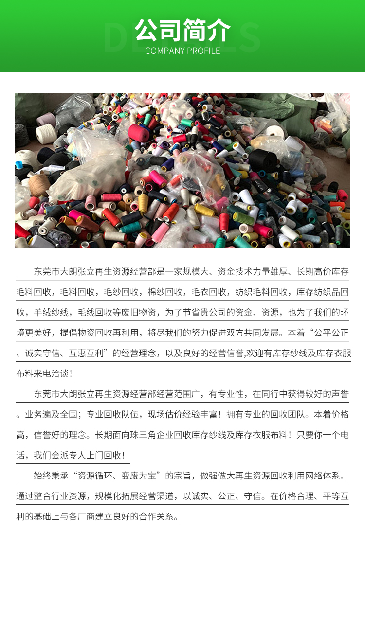 熱搜關(guān)鍵詞: 庫存紡織品回收 庫存紗線回收、 棉紗回收 紗線回收、 毛料回收、